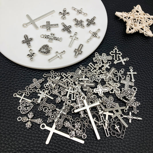 20/50/100pcs Vintage Silver Cross Charm Set – DIY Craft Supplies for Handmade Earrings, Bracelets, Necklaces & Keychain/Bag Acce