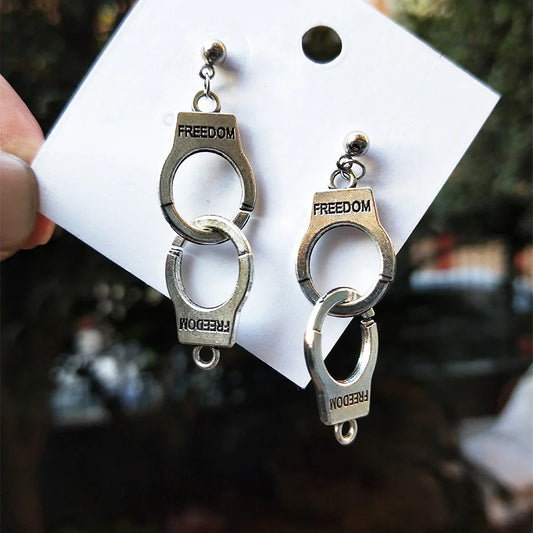 Creative Funny Ancient Silver Color Handcuffs Blade Gun Drop Earrings For Women Punk Simple Metal Style New Pop Gothic Jewelry