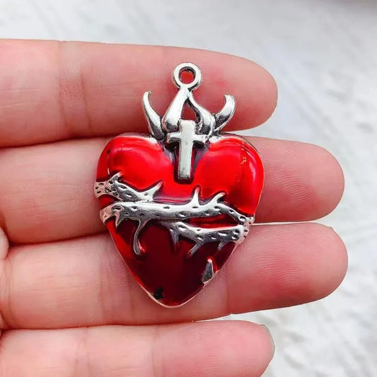 10pcs Mixed Silver Plated Enamel New Gothic Style Sacred Heart Alloy Pendant DIY Charms Earrings Necklace Jewelry Crafts Making